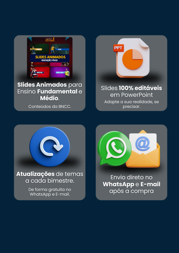 Novos slides são disponibilizados regularmente e enviados diretamente no seu e-mail e WhatsApp.